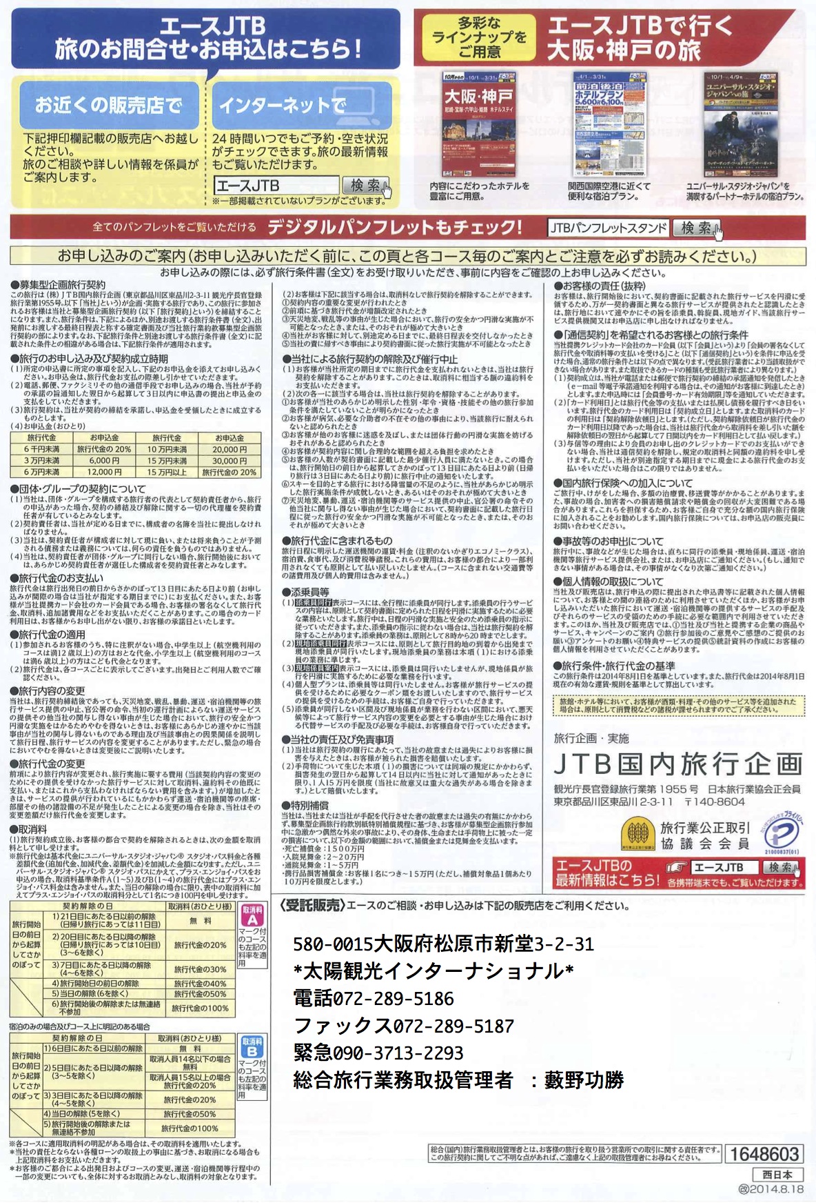 大阪府知事登録旅行業第2-1126号 株式会社太陽観光インターナショナル