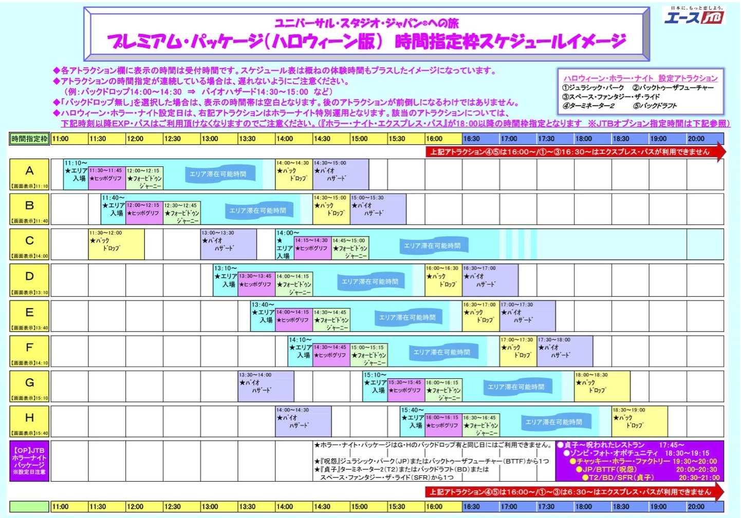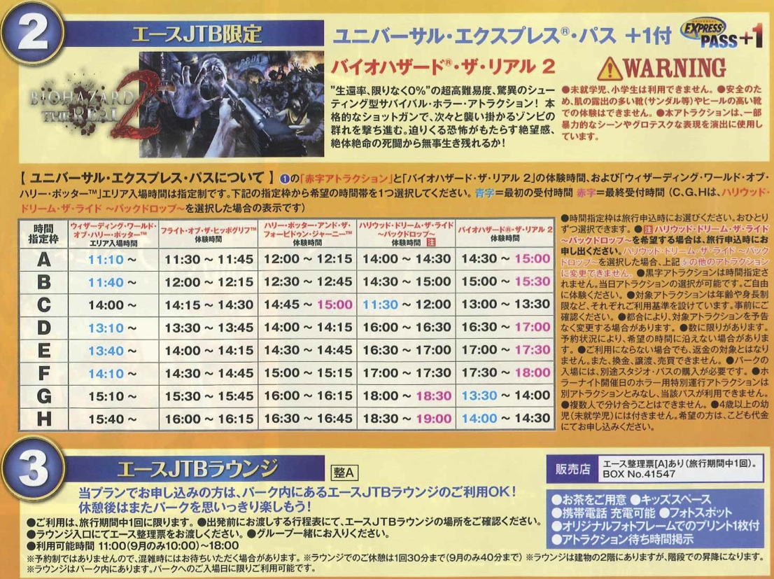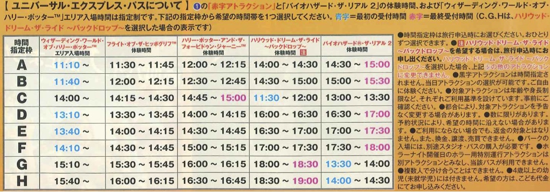 ※①②③=16:30以降、④⑤=16:00以降は通常のエクスプレス・パスでの