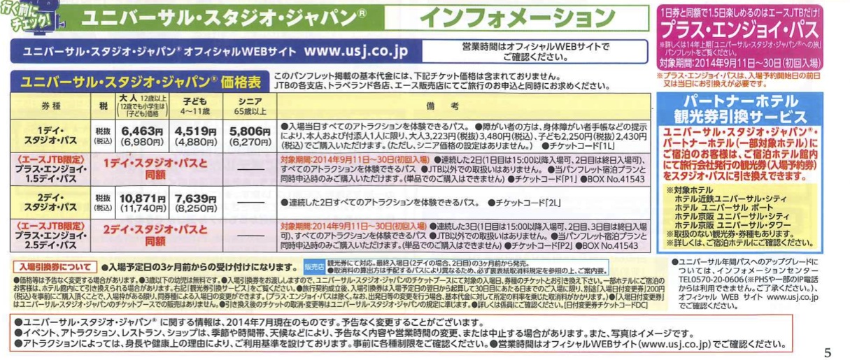ユニバーサル・スタジオ・ジャパン Ⓡ・価格表 参加者特典【無料&割引価格】